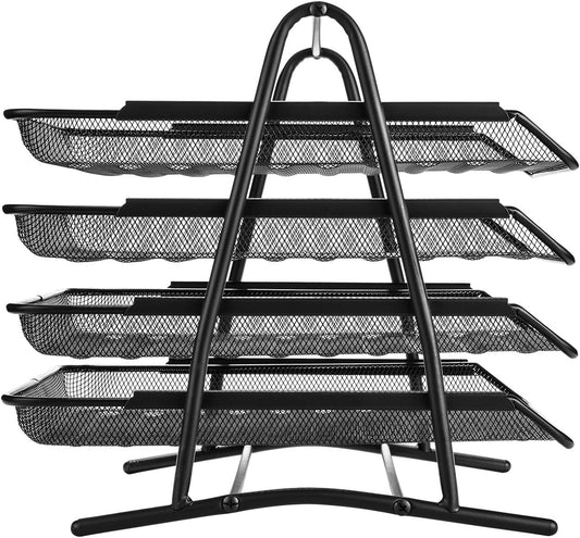 4 Schubfächer Briefablage Organizer, Metall Mesh, Schreibtisch Dokument Brief Ablage für Zuhause & Büro - Schwarz - MEHRWEG