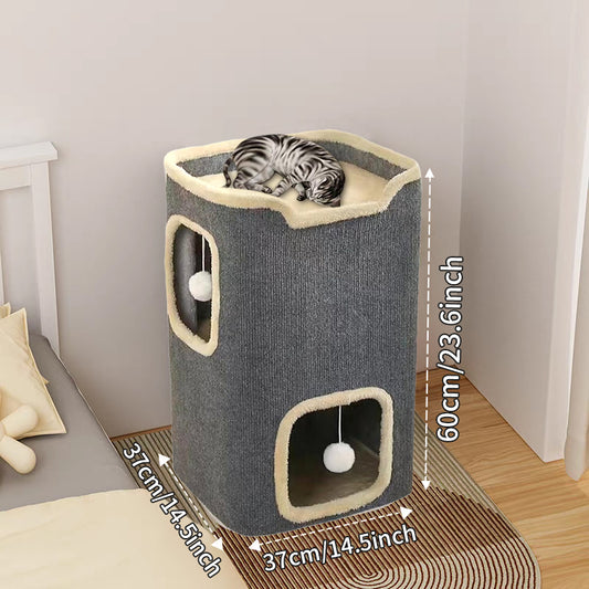 2-lagiges Katzenhaus für Hauskatzen, langlebiges Katzenwürfel-Spielhaus mit baumelnden Bällen, perfekt für mehrere Haustiere